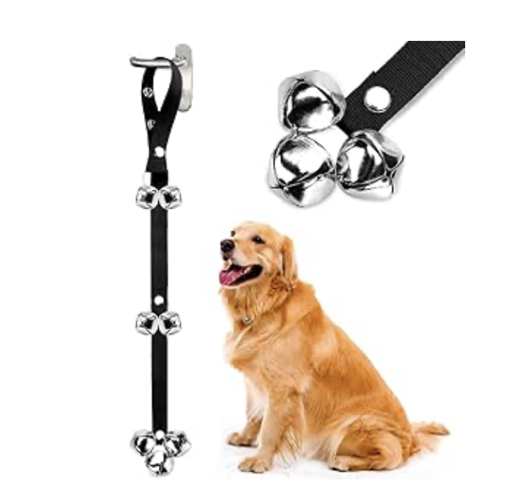 Our dogs have been trained to ring this bell that hangs at our back door to alert us that they need to go outside. When they were puppies, any time we took them out, we rang the bell. After some time we would take their paw and help them ring the bell before opening the door. Within 1 month, they were doing it all on their own. This bell is a very helpful tool for us. They can easily alert us of their need to go out even if we aren’t in the same room.